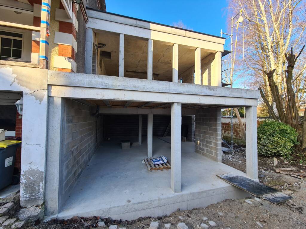 Le projet a été mené avec une attention particulière aux détails techniques et esthétiques, tout en restant simple et fonctionnel. En raison du rapport de sol et de la proximité avec les bords de Marne, des fondations sur micro-pieux ont été nécessaires. Cette méthode a assuré une base solide et stable pour la structure, réalisée entièrement en béton armé. La conception de cette extension de maison a inclus des modénatures et des débords de façade en béton, contribuant à l’aspect général de l’extension. Le choix du béton armé n’était pas seulement pratique, mais ajoutait aussi une touche contemporaine à la structure.