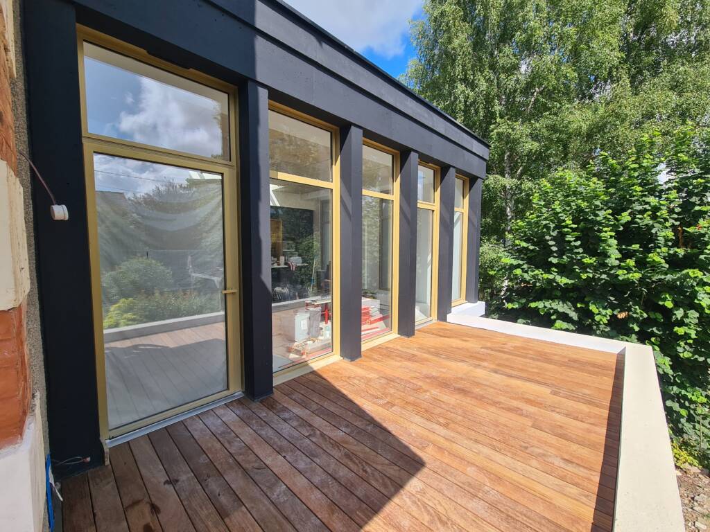 Le but de l’extension était de créer un espace supplémentaire en harmonie avec le reste de la maison, tout en apportant une touche moderne. Le résultat obtenu s’intègre parfaitement à l’environnement existant.