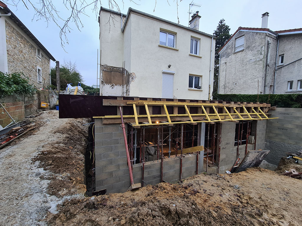 Encore un projet d’extension de maison individuelle à Lagny sur Marne pour la société Legendre Frères. La construction de l’extension est répartie sur deux niveaux, sous-sol et rez-de-chaussée, pour une surface totale de 54m2. S’ajoutent environ 40m2 de toiture terrasse accessible dont une partie sera végétalisée.