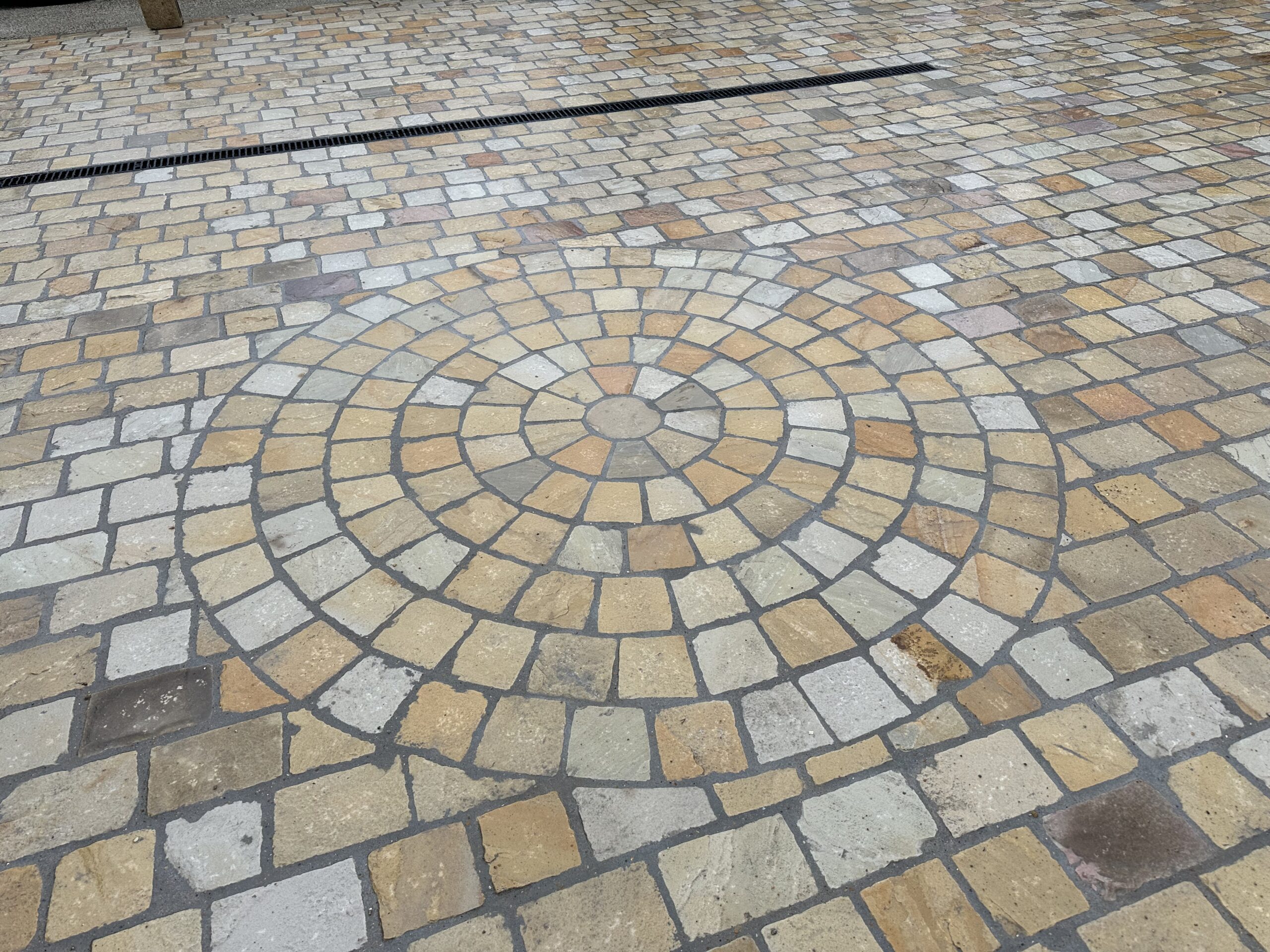 Pour ce projet, les propriĂ©taires ont choisi des pavĂ©s en grès blanc calcaire, un matĂ©riau reconnu pour sa rĂ©sistance et son aspect naturel. Son coloris clair et ses deux motifs arrondis inserrĂ©s discrètement Ă  l’ensemble, apportent de l’Ă©lĂ©gance Ă  l’entrĂ©e de la maison, tout en s’intĂ©grant harmonieusement Ă  son environnement. Le choix de ce matĂ©riau allie praticitĂ© et esthĂ©tisme, car il ne nĂ©cessite que peu d’entretien au quotidien.