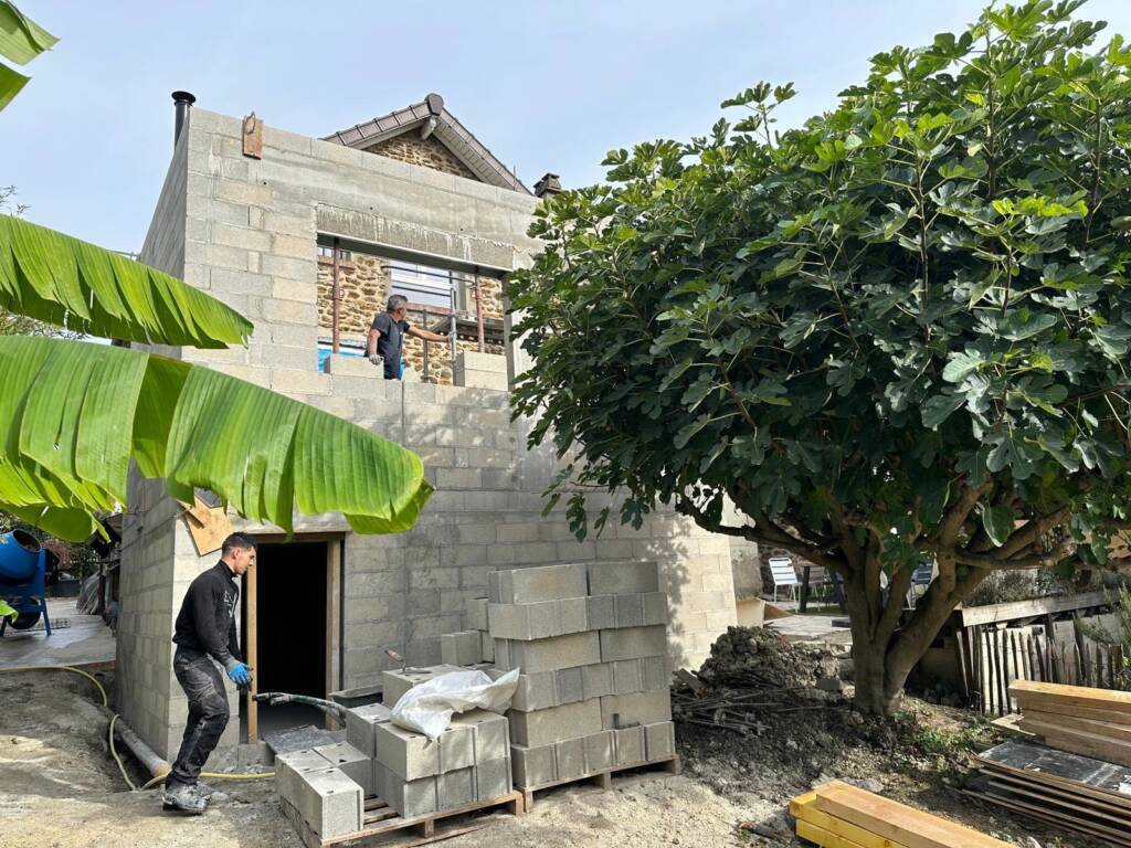 Au cœur de cet agrandissement, ce nouvel espace cuisine se distingue par son utilisation de techniques de maçonnerie traditionnelle, choisissant des parpaings pour leur robustesse et leur fiabilité. Le plancher ne fait pas exception, avec des poutrelles et hourdis en polystyrène plein, sélectionnés pour leur excellente résistance thermique 🌡️, assurant ainsi une isolation optimale du sous-sol.